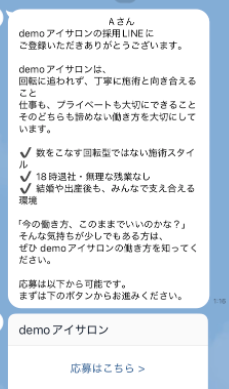その判断材料として、採用LINEの中に動画を用意しておくことで、応募への心理的ハードルを下げることができます。