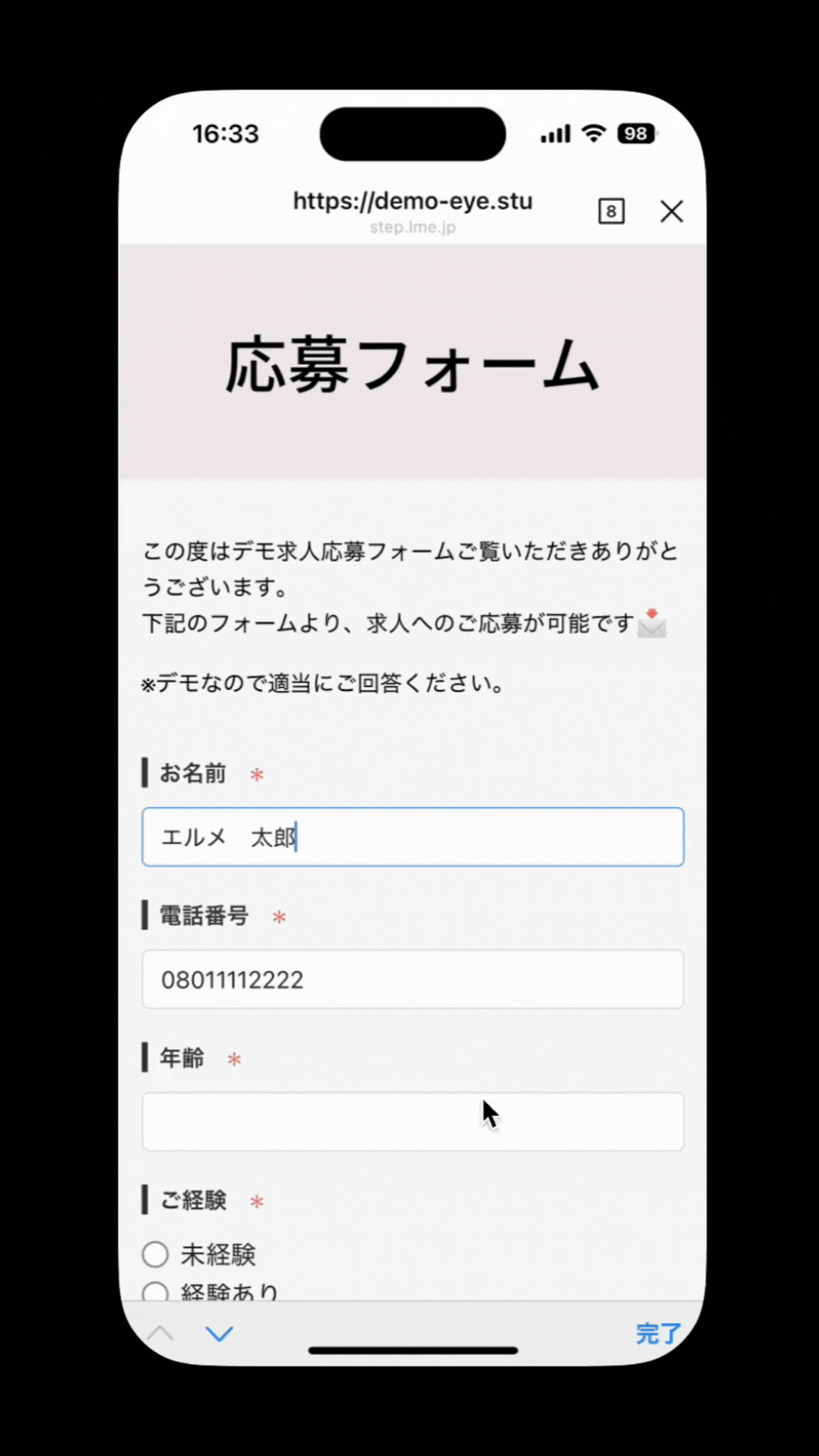 応募フォームであれば、